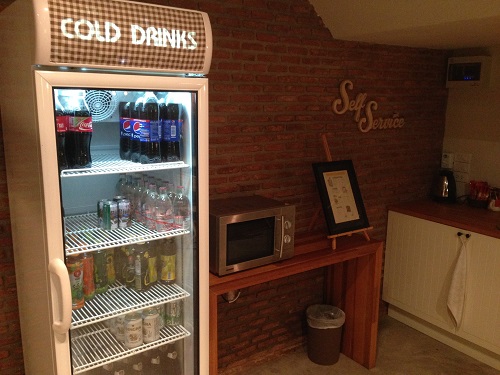 ด้านนอกตรงข้ามล็อบบี้มีโซนกึ่ง living area / kitchenette นั่งเล่นได้ มีขายพวกขนมน้ำดื่มเล็กๆ น้อยๆ ด้วยค่ะ
