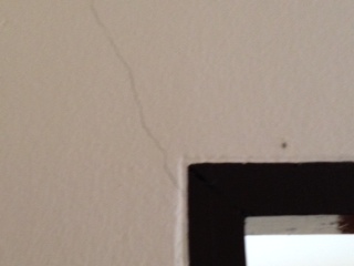 ภาพนี้ร้าวมุมหน้าต่าง รอยร้าวเป็นเหมือนดินสอเส้นบางๆขีด เอานิ้วไปรูดไม่สะดุด ยาวไปจนสุดขอบแผ่นด้านซ้ายและชนบัวล่าง ภาพนี้ร้าวมุมประตูบานเลื่อนและรอบๆด้านล่างตามแนวบานประตู ร้าวแบบเอานิ้วรูดไม่สะดุด