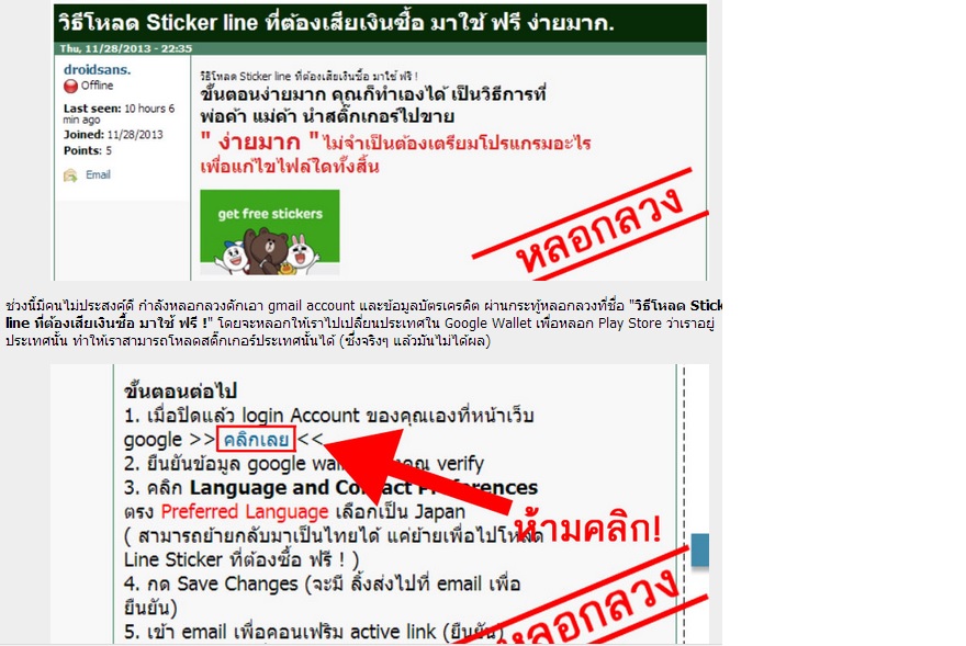 เตือนภัย! phishing หลอกโหลดสติ๊กเกอร์ LINE ฟรี แต่ขโมยข้อมูลบัตรเครดิตและ gmail ของเราไปใช้