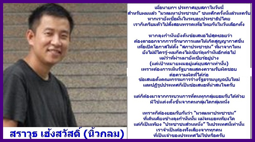 ก็มีเรื่องที่น่ายินดี ที่ยังมีบุคคลกลุ่มหนึ่ง ที่กล้าแสดงทัศนะคติที่เค้าเชื่อว่าถูกต้อง ทวนกระแสสังคมอันสุด fake เหล่านั้น