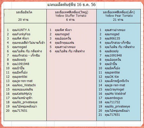 เนื่องในวันแห่งความรัก 14 ก.พ. 57 นี้ ตั้งใจจะแจกมะเขือเทศหัวใจซะหน่อย แต่เมล็ดแก่ไม่ทันค่ะ เสียดายมาก เอาไว้แจกในโอกาสสะดวกต่อ ๆ ไปนะคะ มะเขือเทศที่จะแจกในคราวนี้จึงเป็นมะเขือเทศ Yellow Stuf