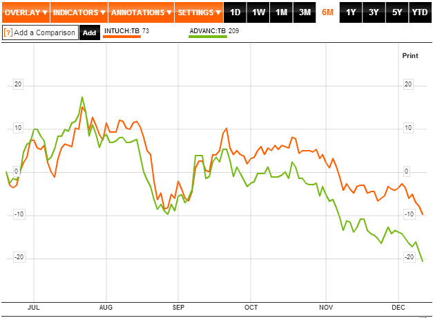 แหม่ Advanc ค่อยๆไต่ขึ้น ส่วน Intuch ค่อยๆไหลลง เลือกตัวไหนเด พี่น้อง