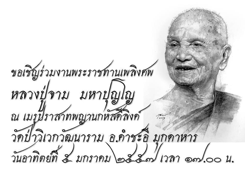 ขอเชิญร่วมงานพระราชทานเพลิงศพหลวงปู่จาม มหาปุญฺโญ