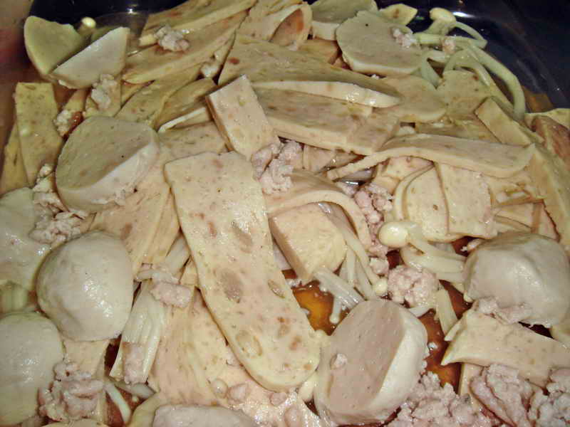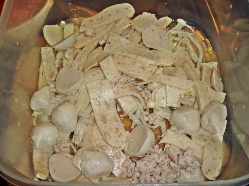 เมนูล้างตู้เย็น วันนี้ก็คือ ยำ แต่ไม่รู้จะเรียกว่า ยำอะไร เพราะมี หมูยอ ลูกชิ้น เห็ดเข็มทอง หมูสับ