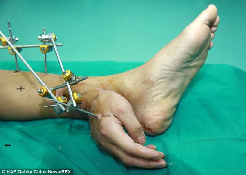 สำนักข่าวต่างประเทศรายงานเมื่อวันที่ 17 ธ.ค.ว่า แพทย์โรงพยาบาลท้องถิ่นแห่งหนึ่งในเมืองฉางเต๋อ ในมณฑลหูหนานของจีน ประสบความสำเร็จในการต่อมือผู้ป่วยหนุ่มรายหนึ่ง หลังจับปลูกติดกับข้อเท้า เพื่อรักษาให้อวัยวะดังกล่าวไม่ตายและสมบูรณ์เพียงพอที่จะนำมาต่อกับมือได้