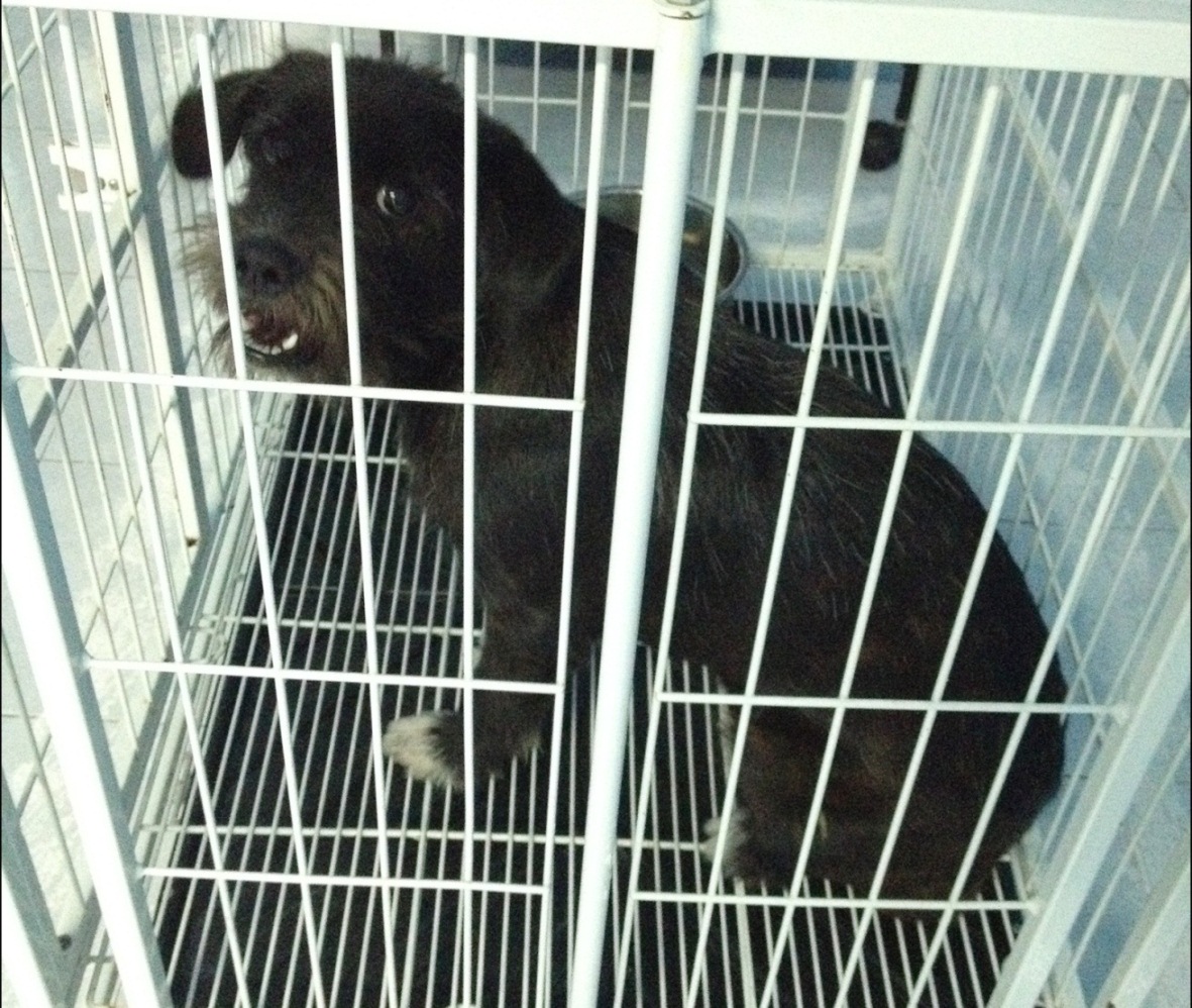 หมาสีดำ แซมสีขาวที่หน้าอก ตัวเล็ก มีเคราและหนวดที่ปาก ตากลมโต และน้องหมาดุมาก สงสัยว่าเป็นตัวเมีย (ไม่แน่ใจ เพราะหมอจับไม่ได้ น้องหมาขู่ตลอด)