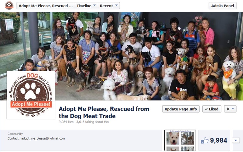 https://www.facebook.com/pages/Adopt-Me-Please-Rescued-from-the-Dog-Meat-Trade/453992947944442