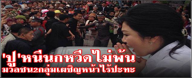ระทึก!!'ปู'หนีม็อบนกหวีดไม่พ้น มวลชน2กลุ่มเผชิญหน้าไร้ปะทะ