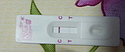 รบกวนค่ะ กำลังลุ้น ตื่นเต้น เลยตรวจก่อนวัน ปจด. จะมา ล่วงหน้า 5 วัน ( ปจด. วันที่ 7/8/56) ช่วง 6 โมงเย็น เจอขีดจางแบบนี้ ท้องไหมค่ะ ตื่นเต้นจังเลย ตรวจ 2 รอบ จางแบบนี้ค่ะ