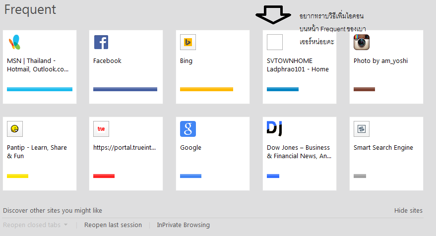 อยากทราบวิธีเพิ่มไอคอน บนหน้า Frequent บนเบาเซอร์ IE หน้าที่เราใช้ประจำหน่อยคะ รบกวนหนุ่มๆตอบหน่อยคะ