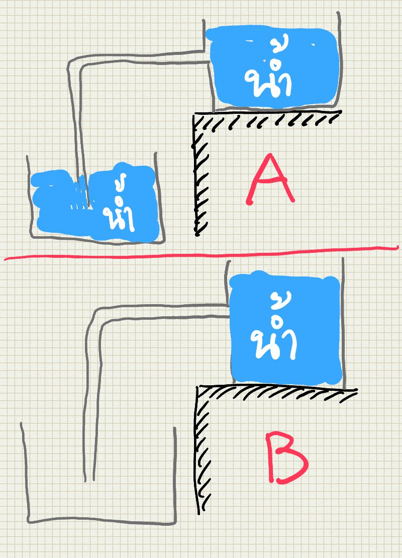 ป.ล. ผมเข้าใจว่าถังด้านล่าง เปล่าๆ น่าจะทำให้น้ำในถังด้านบนไหล