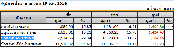 Sinthorn Summary 19/12/2556 : ต่างชาติขายสุทธิ -1,104.16 ลบ.