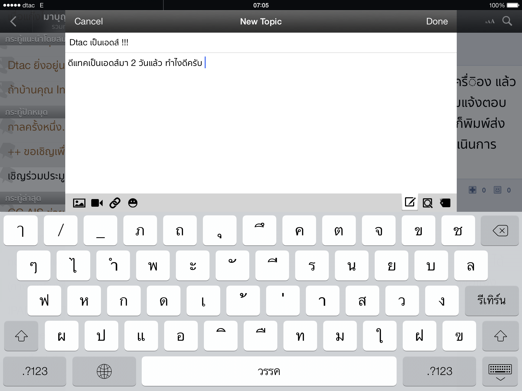 ผมเอาซิม DTAC มาใส่กับ iPad 3 มันไม่ขึ้น 3G อ่ะครับ มันขึ้นแต่ E อย่างเดียว ตอนแรกก็นึกว่าบริเวณนี้ไม่มีสัญญาน 3G เลยเอาไปใส่ iPhone แทน ปรากฏว่า 3G ขึ้นปกติ เอาไปใส่ OPPO ก็ขึ้นปกติ .. 3G DTAC มันใช
