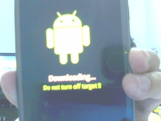 หลังจาก Kies โชว์ว่าดาวโหลดส่วนประกอบในการอัพเดทครบ 100% ที่หน้าจอโทรศัพท์ก็โชว์รูปนี้ครับ