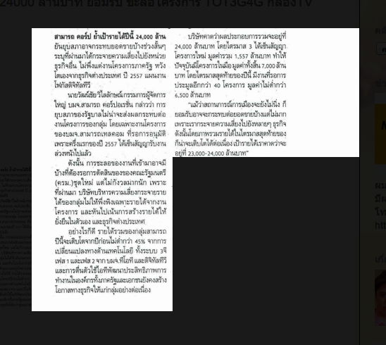 19 ธันวาคม 2556 กลุ่ม สามารถ ยังทำรายได้ 24000 ล้านบาท ยอมรับ ชะลอโครงการ TOT3G4G กล่องTV จนกว่าได้รัฐบาลใหม่