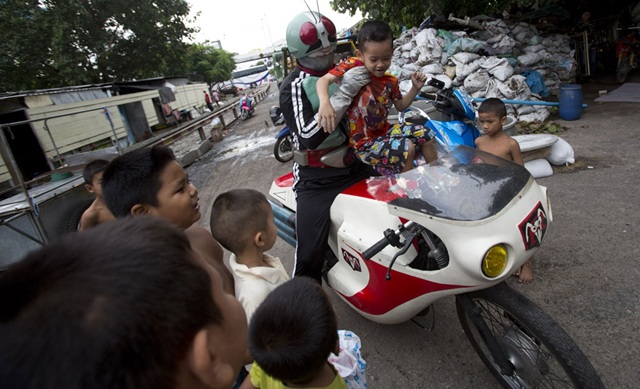 หลายคนสงสัยว่าเขาคือใคร มาจากไหน ทำไมต้องแต่งตัวแบบนี้ ก็ต้องบอกว่าคาเมนไรเดอร์คนนี้เป็นนักธุรกิจชาวญี่ปุ่นชื่ออากิฮิโระ โทมิคาว่า ที่มักจะเดินทางมาเมืองไทยและมีจิตอาสาในการที่จะสร้างรอยยิ้มให้แก่เด็กๆที่ด้อยโอกาส ด้วยการแต่งตัวเป็นฮีโร่ชื่อดังอย่างคาเมนไรเดอร์ พร้อมขี่มอเตอร์ไซค์คู่ใจที่เแปลงโฉมเป็นไซโคลนเหมือนในหนังเปี๊ยบ ออกตระเวนแจกจ่ายขนมและของเล่นตามย่านชุมชนแออัดในกรุงเทพ ซึ่งการกระทำของเขาได้รับความสนใจจากสื่อต่างประเทศและสื่อไทยมาแล้ว ส่วนเหตุการณ์อุบัติเหตุที่เกิดขึ้นนั้น ช่างอับอายขายขี้หน้าชาวต่างชาติซะจริงๆ ยังไงคงต้องขอแสดงความเสียใจและขอเป็นหนึ่งในกำลังใจให้สู้ต่อไปนะ ไอ้มดแดง つづく