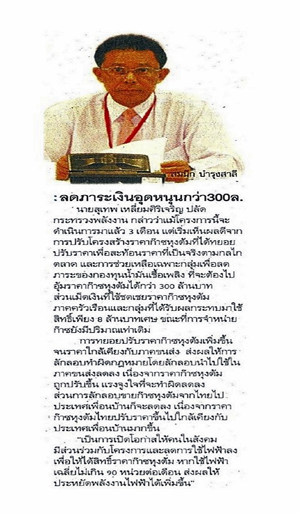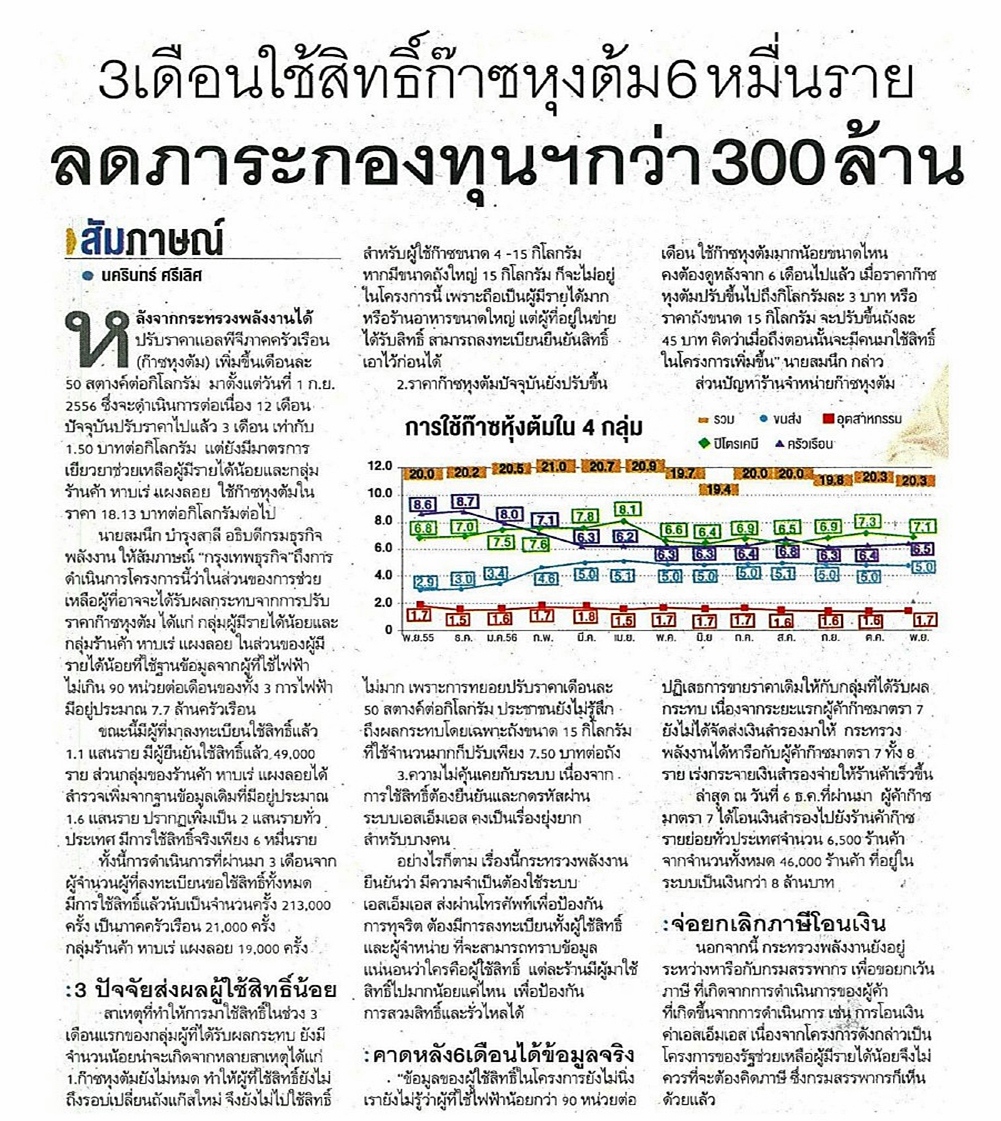 สัมภาษณ์: 3เดือนใช้สิทธิ์ก๊าซหุงต้ม6หมื่นรายลดภาระกองทุนฯกว่า300ล้าน