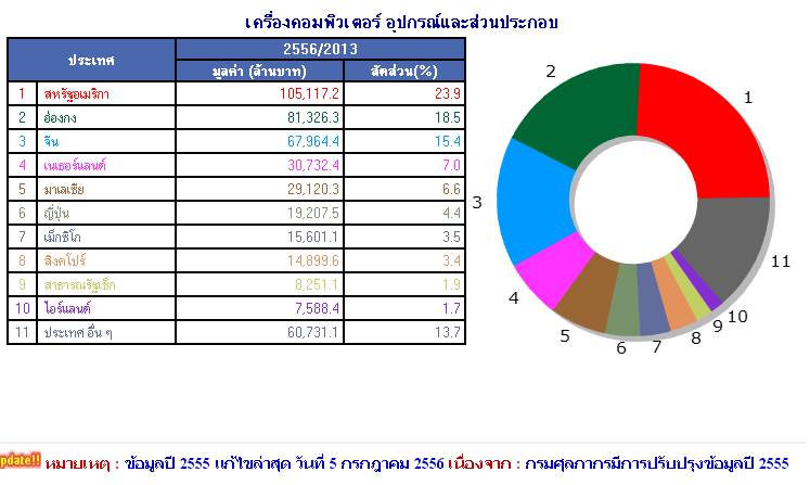 2. ชิ้นส่วนคอมพิวเตอร์ จะเห็นว่า เราส่งออกไป อเมริกา และ จีน ทั้งคู่ แสดงว่า การฟื้นของเศรษฐกิจอเมริกาและจีน
