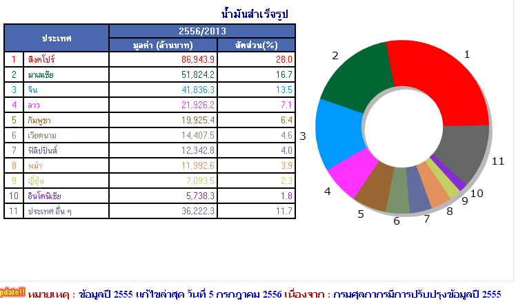 น้ำมันสำเร็จรูป จะเห็นว่า โรงกลั่นของไทยส่วนใหญ่จะป้อนไปให้ เพื่อนๆในกลุ่มอาเซียนครับ