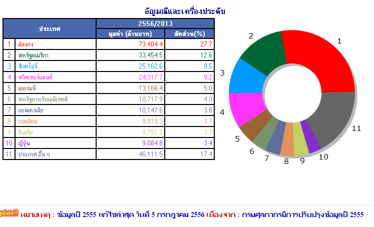จากอันดับมูลค่าการส่งออกนี้ จะเห็นว่า ประเทศเรา จะ "ดุลการค้าเกินดุล" , (X-M) มีกำไร หรือ มูลค่าการส่งออกมากกว่านำเข้านั้น