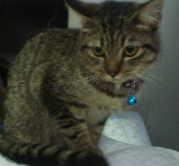 พอดีเรากับแม่ไปทำบุญที่วัดค่ะ ซึ่งปกติที่บ้านเราจะคัดค้านการเลี้ยงแมวเป็นอย่างมาก เพราะที่บ้านเลี้ยงกระต่ายและหนู (กลัวหนูโดนกิน เฮ่อ ๆ )