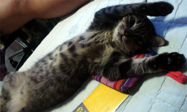 OoO!!! โอ้ บร๊ะเจ้า แมวนั่งหลับ ป๊าด!!! ทำไปได้ เราเลยอุ้มแมวขึ้นมา แต่มันกับมองเราด้วยสายตาประหนึ่งว่าเราเป็นเบาะนุ่ม ๆ ของมันและหลับต่อ แต่ในใจก็รู้สึกถูกชะตา พระยกให้เราเลยอุ้มขึ้นรถมาเลย