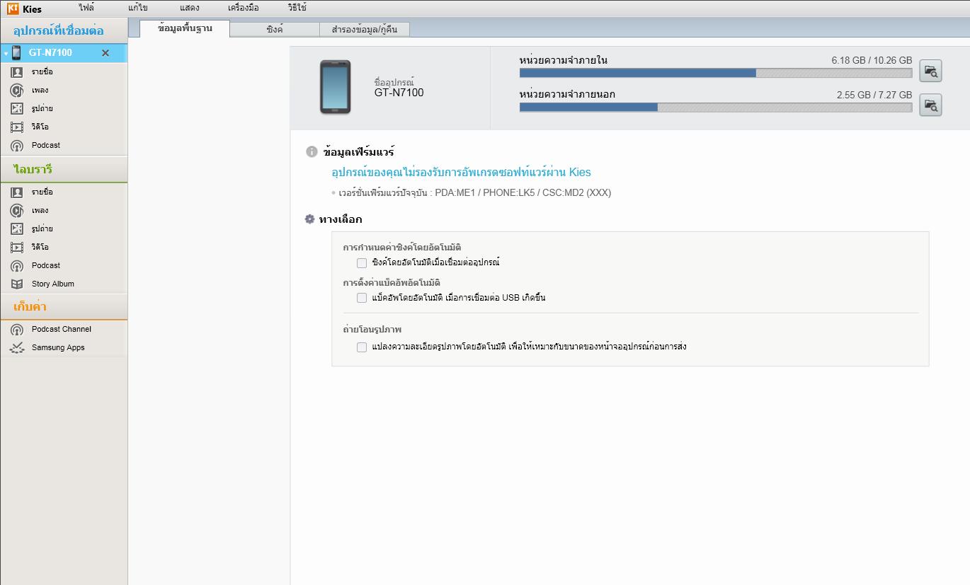 ผ่านโปรแกรม Kies บอกไม่รองรับ