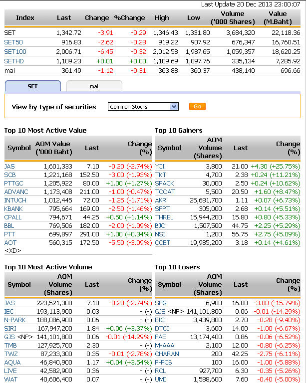 ### Graph Stock : Top 10 . Weekly 20.12.2013 ###