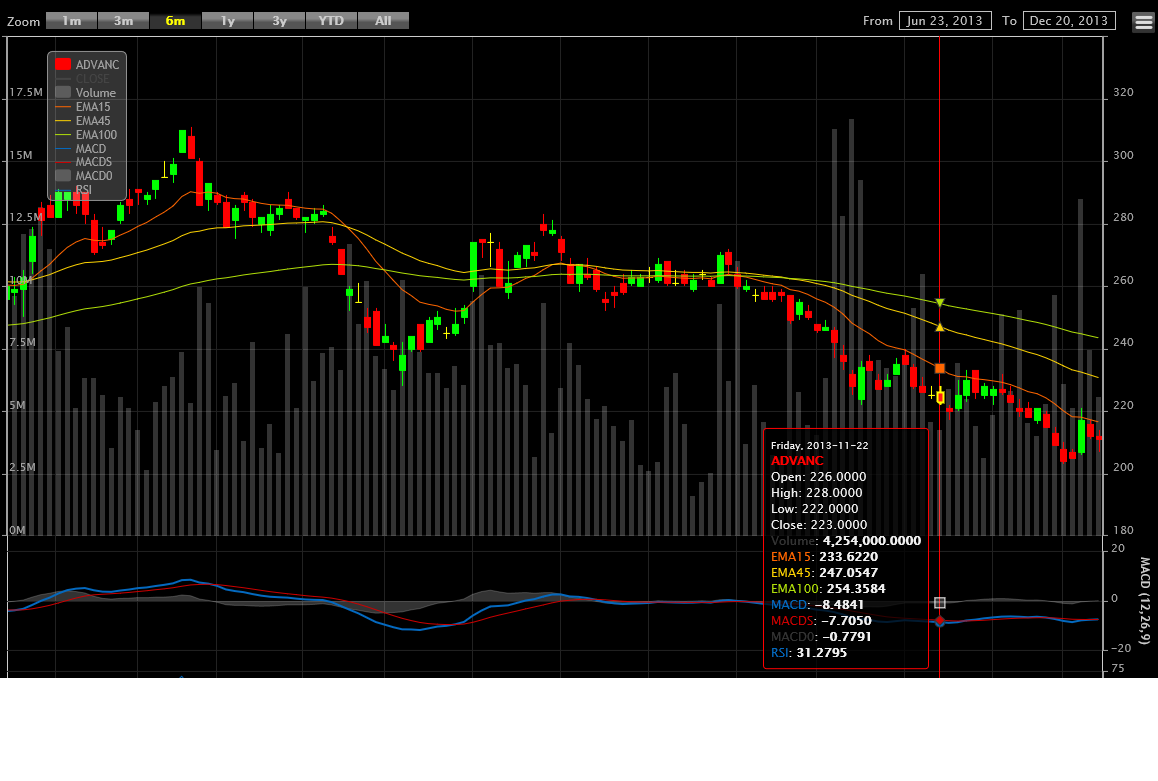 นักวิเคราะห์เทคนิคคนหนึ่งแกบอกว่า ADVANC ผ่านจุดต่ำสุดที่ 222 ไปล่ะ แล้ว 203 จะเรียกว่าอะไร?