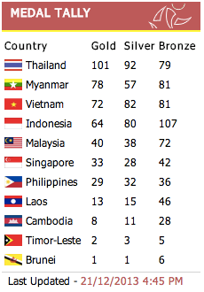 ตารางสรุปเหรียญทองซีเกมส์ พังหรือเปล่าครับ ของไทยไม่อัพเดทเลย !!