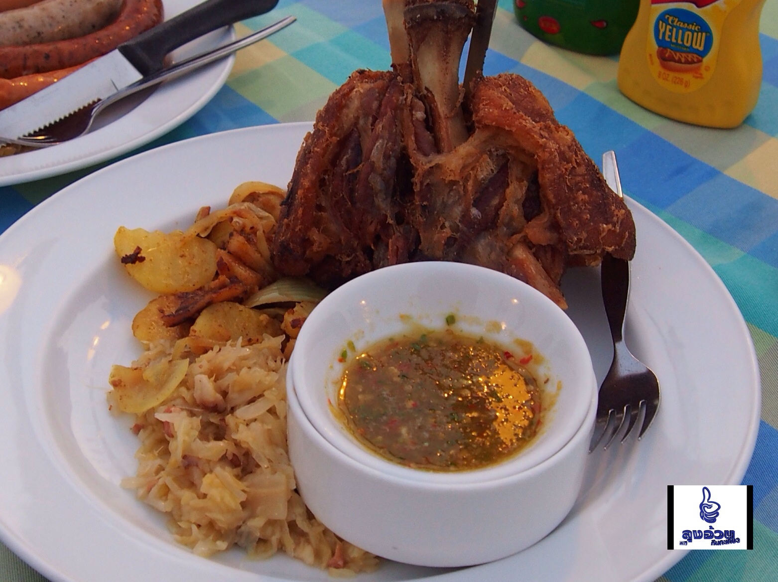 ที่สั่งไปก็ ขาหมูเยอรมัน ไส้กรอกรวม ห่อหมกมะพร้าวอ่อน ซี่โครงอบน้ำผึ้ง กุ้งอบวุ้นเส้น ลาซานยาผักโขม ปลาอบเกลือ และ หอยนางรมทอดกรอบ