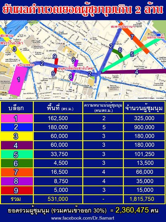 อยากทราบว่ากลุ่มมวลชนที่กำลังประท้วงรัฐบาล ในวันที่ 24-25-26 พฤศจิกายน 2556 คนมาเป็นล้านจริงไหม ขอข้อมูลที่เป็นข้อเท็จจริงแบบมีแหล่งอ้างอิงเชื่อถือได้หน่อยครับ ได้ยินแกนนำผู้ชุมนุมประกาศบนเวทีว่าเกิน
