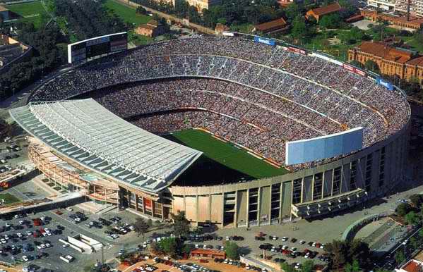 ผมจะยกตัวอย่างสนามกีฬาที่ใหญ่ที่สุดในยุโรป คือ Camp Nou คัมป์ นู รังเหย้าของทีมต่างดาว Futbol Club Barcelona บาร์เซโลนา นั้นเอง มีความจุ95000ที่นั่งนะครับภาพข้างล่างนั้นคือตัวสนามและจำนวนคนที่เข้าไปชมเกมส์ที่เต็มความจุ95000ที่นั่ง แบบว่าคุณเห็นไหมว่าเยอะแค่ไหน เอาละผมให้เวลาคุณดูภาพและลองจินตนาการคนของม๊อบสุเทพเข้าไปว่าจะเต็มไหมหรือเยอะขนาดนั้นเอาละนึกเลย2นาที