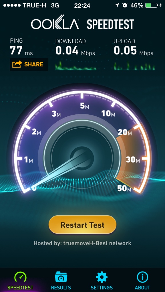 ใช้ 3G+ อยู่ย่านมีนบุรี กรุงเทพมหานคร ตั้งแต่เปิดคลื่นใหม่มา ก็ความเร็วตกลงมาเลย เมื่อก่อน 2Mbps / 0.5Mbps และไม่ได้ติด FUP ด้วยซ้ำ นี่คือความเร็วที่ทดสอบล่าสุดครับ // รบกวนทาง TRUE-H มาชี้แจงที ว่าเ
