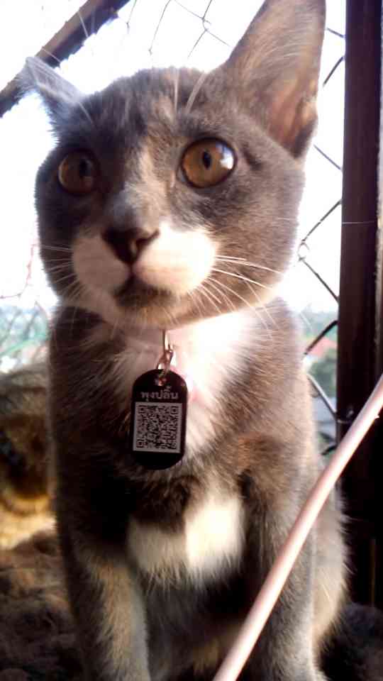 พ่อสั่งทำที่ห้อยคอมาให้พวกป๋มใส่คับ เผื่อพวกป๋มวิ่งจรู๊ดออกจากห้องไปจะได้มีคนพามาส่งถูก
