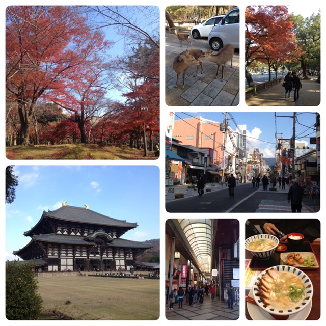 การเดินทางนั่ง subway ไปลง namba ต่อรถไฟสาย kintetsu ไปนารา หลังจากถึงนาราแล้วก็ใช้กำลังแรงขาเดินชมวิวไปจนถึงวัดโทไดจิ เพื่อชมอุโบสถไม้ที่ใหญ่ที่สุดในโลกค่ะ ระหว่างทางก็จะมีน้องกวางมาทักทายตลอดเลยค่ะ