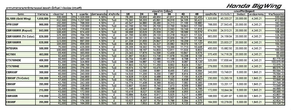 ขออนุญาติอ้างอิงเรทผ่อนของทาง honda bigwing นะครับ