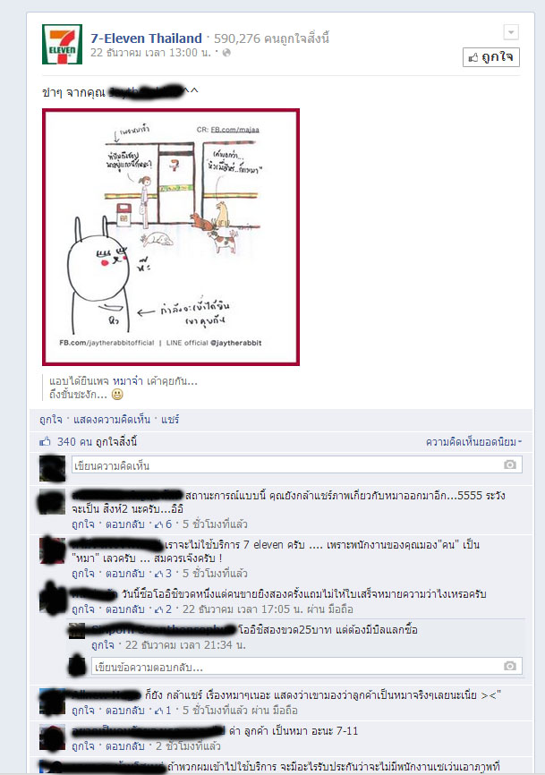 Facebook 7-11 ยังวนเวียนแต่เรื่อง "สุนัข" สุดๆจริงๆพนักงานที่นี่