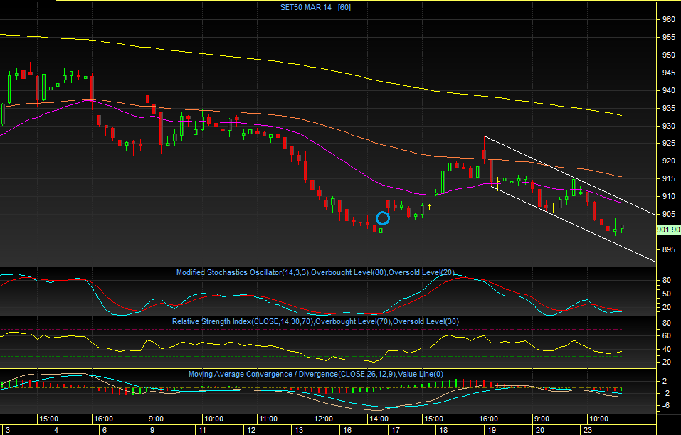 Technical Analysis : S50H14 TF Day เมื่อวานนี้ หลังจากไม่สามารถ ใต่ระดับไปต่อ ก็ค่อยๆย่อตัวลงมาเรื่อยๆ