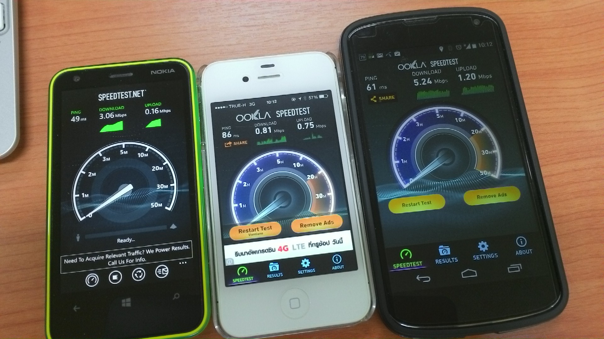 คือ ใช้เบอร์ป้าเล่น เพราะพึ่งไปย้ายค่ายมา ลองกดเนตฟรี iPhone4 Testspeed ได้ไม่ถึง 1 เมก 300-700 Kbps ราวๆนี้ ไอ้เราตอนแรกก็นึกว่าจะเร็วขึ้น แบบที่ในพันทิปหลายๆความเห็นเค้าว่ากัน (หลังจากปิดเบอร์ใน
