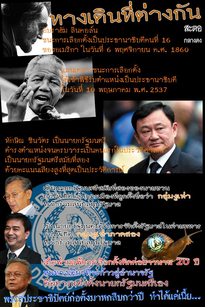 <<<< อับราฮัม แมนเดลา ทักษิณ ชวน อภิสิทธิ์ สุเทพ "เส้นทางเดินที่ต่างกัน" >>>>