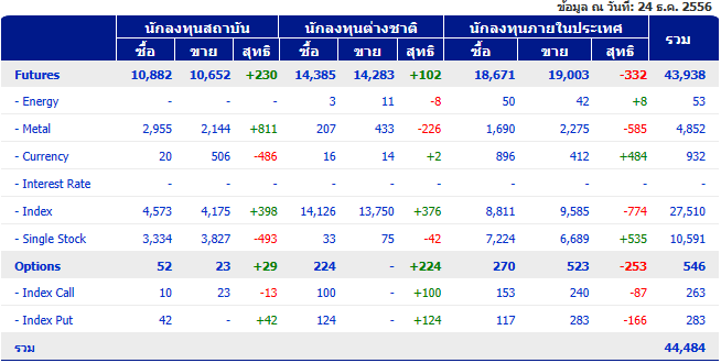 24/12/56 ต่างชาติ Long index future 376 สัญญา