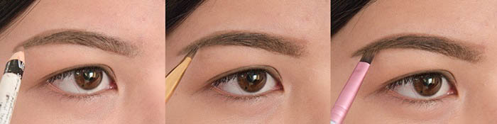 1. คิ้ว ใช้ดินสอเขียนคิ้ว อะไรก็ได้นะ ที่ไม่เเข็ง วาดโครงคิ้วช่วงหางคิ้วถึงกลางคิ้ว ไม่ต้องเนี้ยบมาก