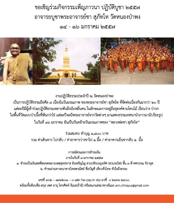 งานปฏิบัติบูชา 14-16 มกราคม 2557 วัดหนองป่าพง