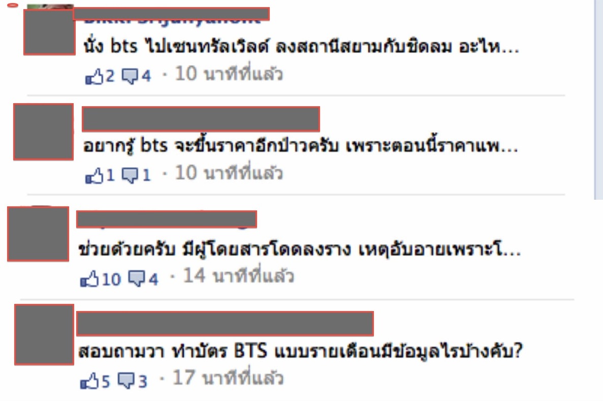 ::: เงิบ !! " รถไฟฟ้า BTS ขัดข้อง แต่คนแห่พากันไปถามในเพจนักร้องเกาหลีวง BTS ตรึมม " :::