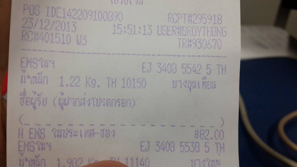 ผมขอเลขรหัสพัสดุจากแม่ค้าวันนี้แล้วลองเช็คดูเมื่อตอนบ่าย พัสดุออกจากมหาวิทยาลัยสยาม แต่รับถุงไปอยู่ ศป.นครราชสีมา