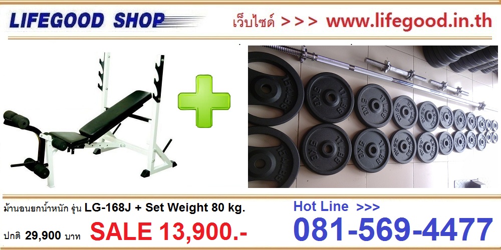 ชุด ม้านอนยกน้ำหนัก LG-168J + พร้อมเซ็ตเวท 80 กก. ของทาง lifegood ในราคา Sale 13,900 จาก 29,990