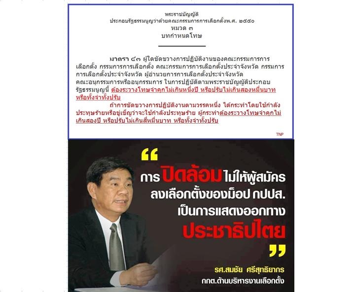 กกต ต้องทำหน้าที่จัดการเลือกตั้ง พร้อมแจ้งความดำเนินคดีผู้ขัดขวางการเลือกตั้ง