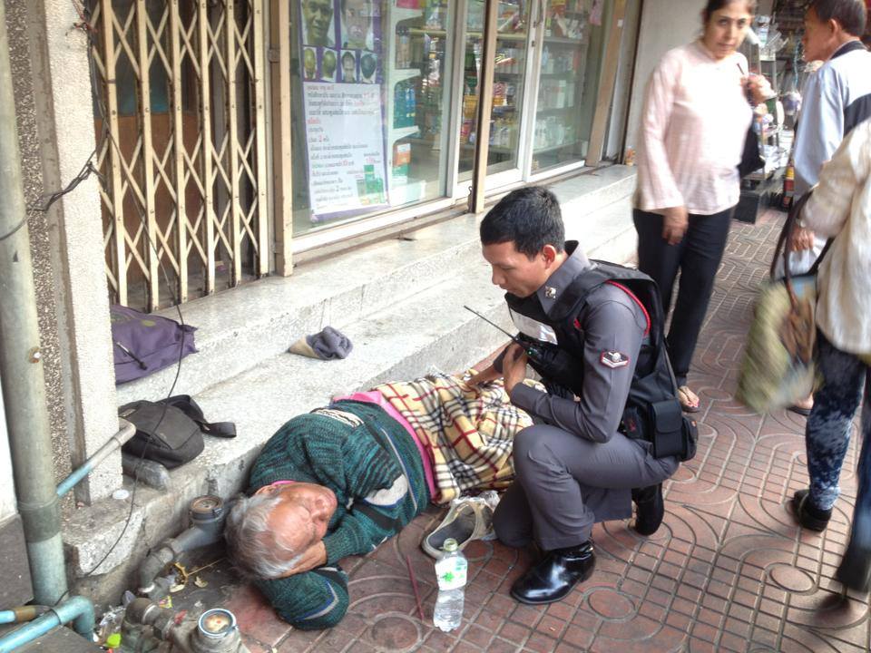 หลังจากที่เราได้โทรไปขอความช่วยเหลือจากศูนย์ช่วยเหลือเด็กและคนชรา ทางศูนย์ประสานงานกับตำรวจท้องที่ สน.พระราชวัง และหน่วยกู้ชีพนำส่งคุณตาไป รพ.วชิระพยบาลเพราะคุณตาเป็นเบาหวานและอัมพฤกษ์ ตอนนี้คุณตาถึงมือหมอปลอดภัยแล้ว หากใครรู้จักญาติคุณตา สราวุธ บุตรโส ให้ติดต่อได้ที่ สน. พระราชวังค่ะ