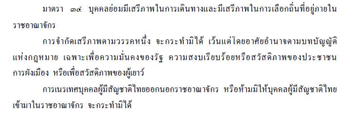 มาตรา 28 ของรัฐธรรมนูญบัญญัติไว้ว่า “บุคคลย่อมอ้างศักดิ์ศรีความเป็นมนุษย์หรือใช้สิทธิและเสรีภาพของตนได้ ตราบเท่าที่ไม่ละเมิดสิทธิและเสรีภาพของบุคคลอื่น ไม่เป็นปฏิปักษ์ต่อรัฐธรรมนูญ หรือไม่ขัดต่อ